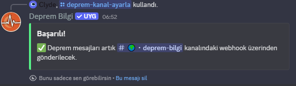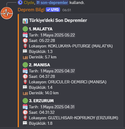 Türkiye ve çevresindeki depremleri anlık takip etmek ve sunucunuzda paylaşmak için geliştirilmiş güçlü ve sade bir bot.