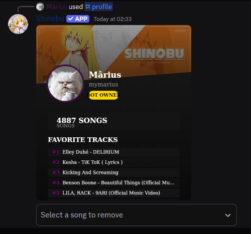 Create and customize your own unique Shinobu profile! Design your profile with custom colors and banners Showcase your favorite songs directly on your profile Like songs to have them appear on your profile for others to see