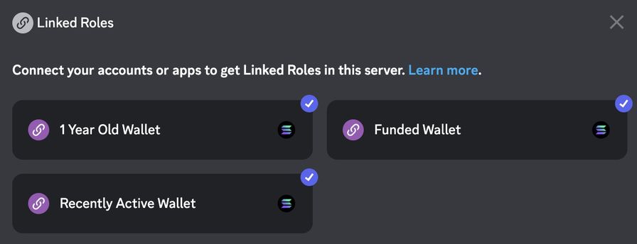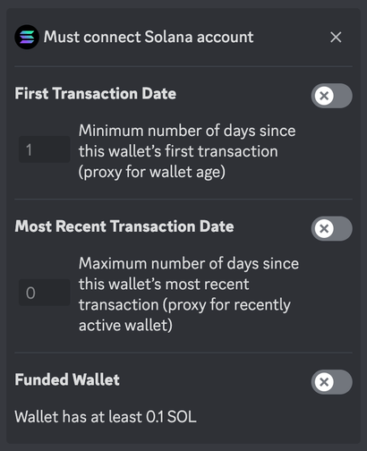 Built by Solana Labs, this bot verifies and links a user's Solana wallet to their Discord profile, providing metadata like: