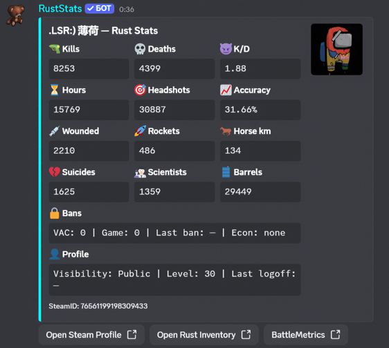 RustStats — a completely free bot for Rust players