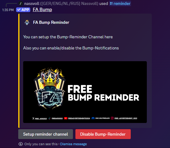 - /reminder → Set up personal bump reminders (DM or channel) so you never miss a manual bump
