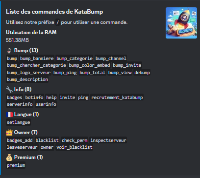 What's better than a French bot with daily updates! With KataBump, you will be able to bump your server every hour and all for free. In addition, we offer active, welcoming support and competent staff.