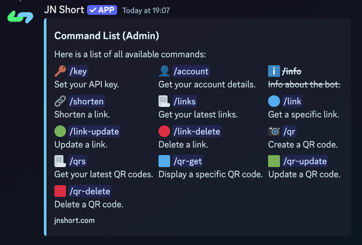 🆓 API Access: To use this Discord bot, ensure you have an active JN Short account with API Access. Don't have an account yet? No worries! Sign up today and enjoy a complimentary 7-day trial on our website.