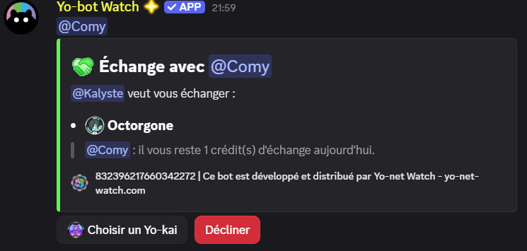 Utilisez le système d'Échange pour commercer avec n'importe quel utilisateur du bot.