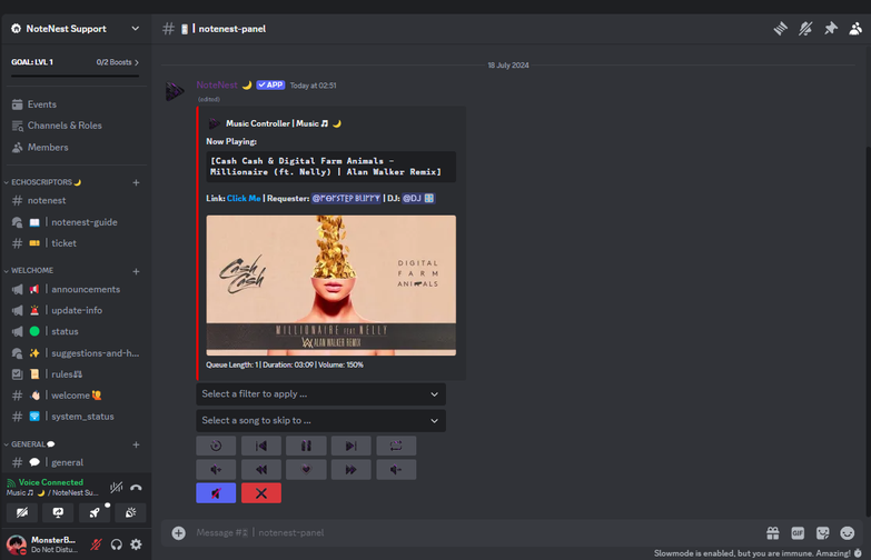 NoteNest is the ultimate Discord music bot, designed to bring the party to your server! 🎉 It's packed with features to elevate your music experience, making it easy to play your favorite tunes, create playlists, and manage your server's music like a pro. 🎧