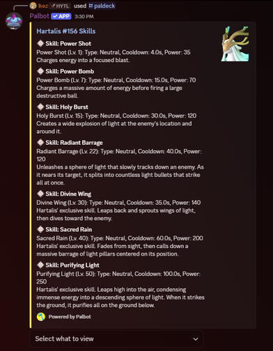 /paldeck: Explore detailed information about any Pal in the Palworld game./skills: Discover skills for all Pals in the game./breed: Find potential breeding combinations for your favorite pals./items: Look up item information in the Palworld game./locate: Locate where Pals spawn on the map./passives: Obtain specific details about a passive skill./buildings: Look up the various structures you can build in Palworld.