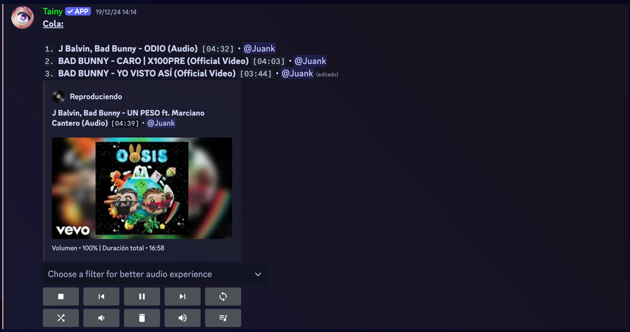 🎧 Ideal for communities: Whether for parties, study sessions or gaming, Tainy guarantees the best musical atmosphere on your server.