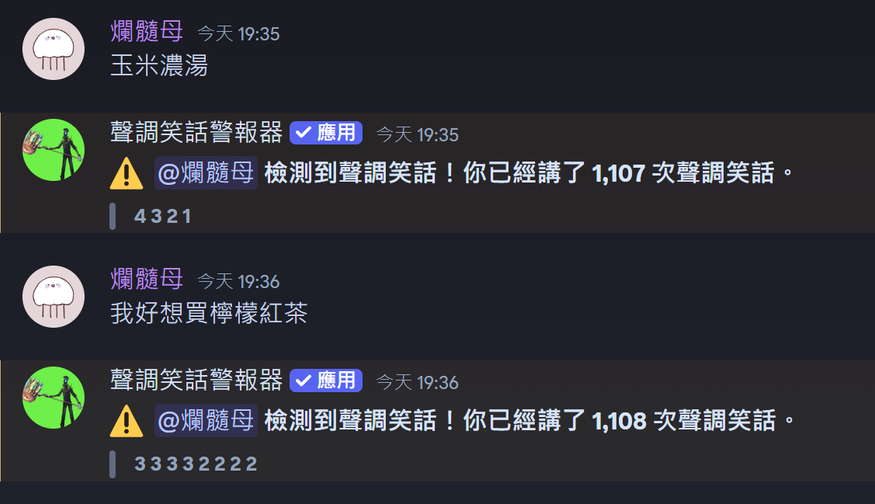 或是連續4個以上相同的聲調,就會被判定是一個聲調笑話。