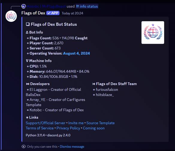Flags of Dex is a Discord bot dedicated to catching traditional, historical and modern flags around the world! This bot functions just like BallsDex, and it's fun to use with others too!