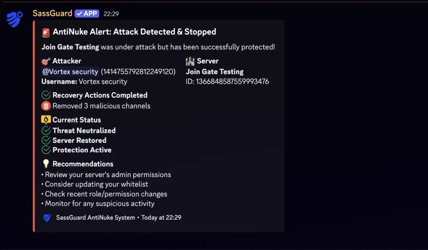 SassGuard is a comprehensive Discord moderation & security bot — combining cutting-edge AI, advanced protection systems, and attitude.