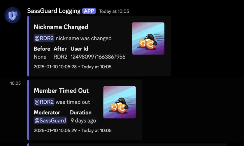Unlike bland bots that just delete stuff, SassGuard serves attitude. Every action is a show: