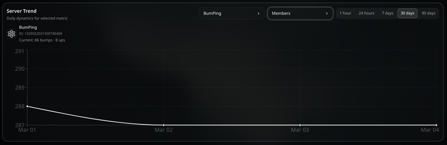 In addition to promotion features, BumPing provides monitoring and analytics tools that help administrators understand how their communities are performing.