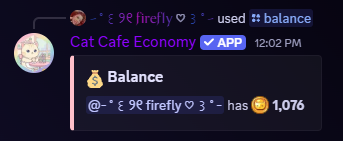 Meow! Welcome to the Cat Cafe Economy Bot, the ultimate Discord economy experience where you can earn coins, play silly games, gamble your whiskers away, collect rare treasures, and show off your fabulous profile. Build your cat empire through multiple earning streams and climb the leaderboard while petting virtual cats. Purr-fect fun! 😸