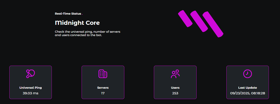 Midnight Core is a custom application for Discord servers developed by the Midnight Sun Studios team.