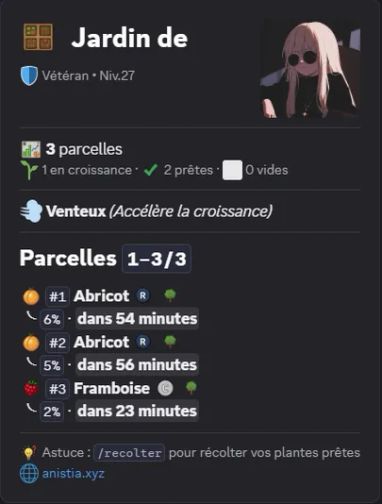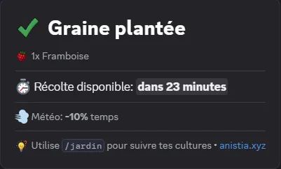 Anistia Jeu d'agriculture sur Discord. Plante des graines, récolte des fruits, ouvre des mystery boxes, rejoins une corporation et grimpe le classement !
