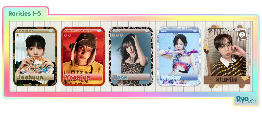 ❥ RYO is a kpop collecting bot based off Ryo from NCT! We have a vast selection of obscure and popular groups. Join today to begin collecting!! ★ https://discord.gg/ryobot
