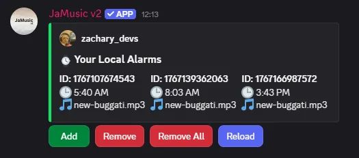 Alarms & Reminders: Set fully functional alarms with sound using !alarms—one of the first bots to bring audible alarms to Discord. Manage your upcoming alarms easily with !alarmlist, so you’ll never miss an important event or task again.