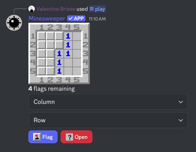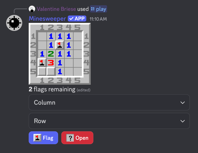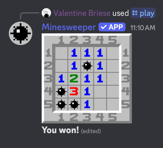 Created by Valentine Briese Inspired by @goldie_ilss Source Code: https://codeberg.org/valentinegb/minesweeper Community Server: https://discord.gg/7v2aY2YzJU