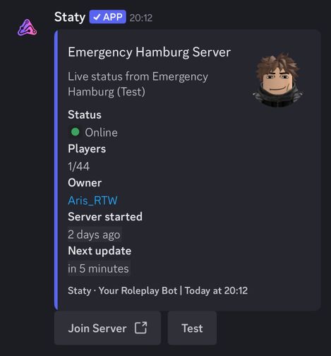 - Emergency Hamburg Statistics: With this feature, you can monitor/track your public Emergency Hamburg server, including player count, status, owner information, and start time all fully customizable!