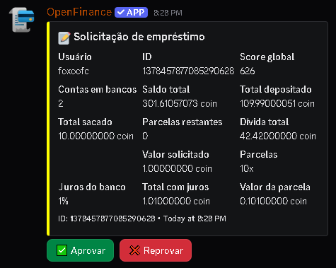This system has a way to take loans and receive interests by depositing a value with coins in the bank.