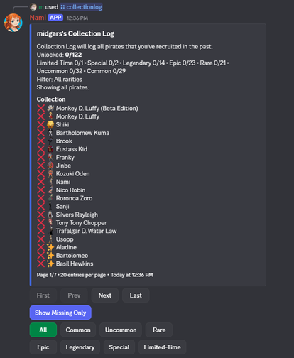 📚 Collect Them All /collectionlog — Track what you have unlocked and chase missing pirates.