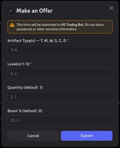 A Bot made for the game HS Dark Nebula to trade Artifacts easily. It has the following: