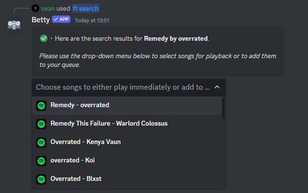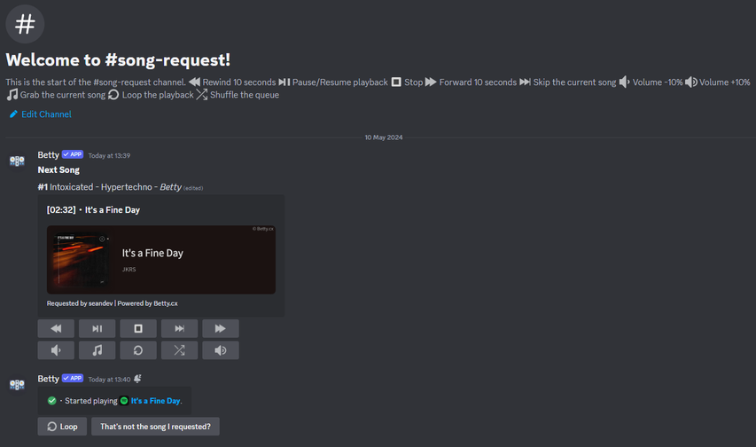 Betty is the perfect match for either directly starting and playing music or setting up an advance Discord Music bot.