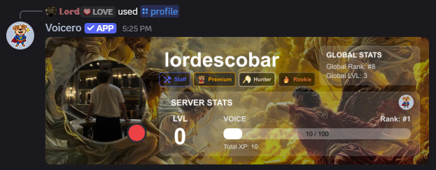 - Rank Cards: Show off your status with high-performance, beautifully designed profile cards.