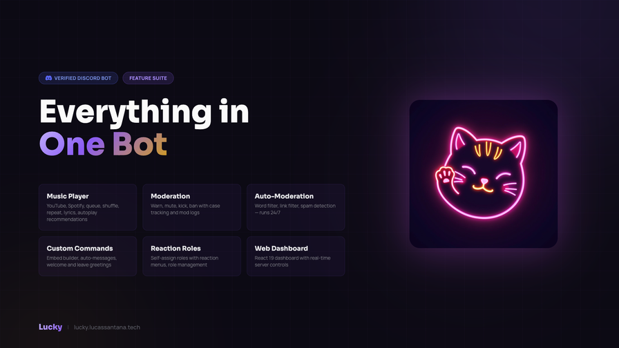 Lucky is an all-in-one Discord bot and web dashboard built for modern communities.